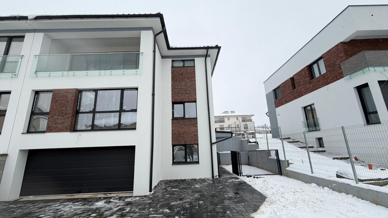 Vă propunem spre vânzare o casă individuală în regim cuplat (D+P+E), cu autorizație de construire proprie, înscrisă în C.F., situată într-o zonă rezidențială nouă, reglementată prin P.U.Z., cu acces controlat.